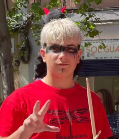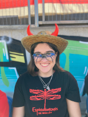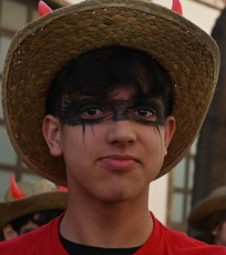Es diferencia en ser l’únic “diable” que porta capa i faldilla.
